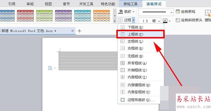 3、現在表格沒有邊框了,還是選中所有表格,點擊“邊框”選擇“上框線”。