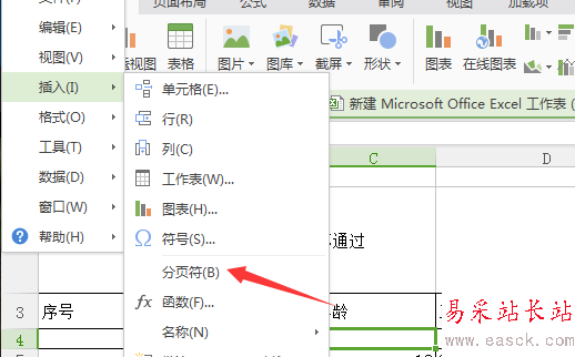5、進行選中了插入之后,彈出了下一級菜單選中為分頁符的選項。