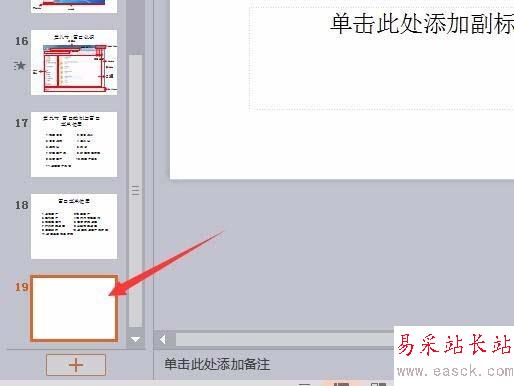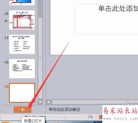 方法二:在左側幻燈片導航欄的最底下點擊加號按鈕,可以在所有幻燈后的最后插入新幻燈片。