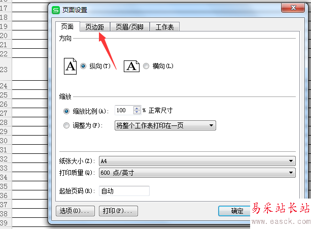 3、這時就會彈出“頁面設置”窗口,我們會看到有一個“頁邊距”選項卡,我們點擊。