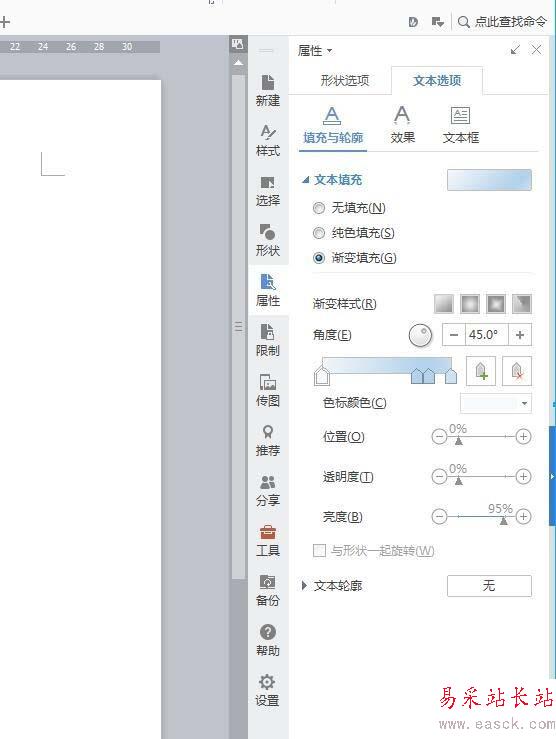 5、選擇文字,在其文檔的右邊,可以為所輸入的文字屬性進行填充