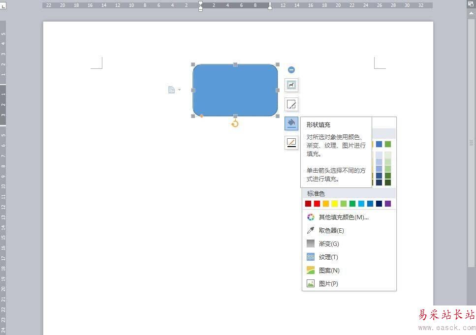 3、先圖后文調整圖形位置(利用網格和標尺或者CTRL+方向鍵)準確定位,點擊圖形形狀右邊的小“十”字,可以設置圖形形狀的樣式、套用模版、填充圖形形狀的顏色等