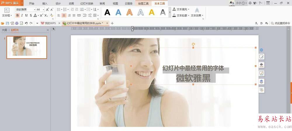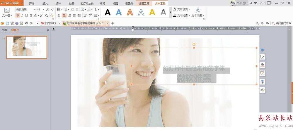 3、將取色器放在圖片衣服上,單擊一下,文本框里的文字的顏色也就變成同樣的了。