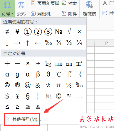 4、點擊符號選項,在其子級菜單里找到其他符號選項,如圖所示: