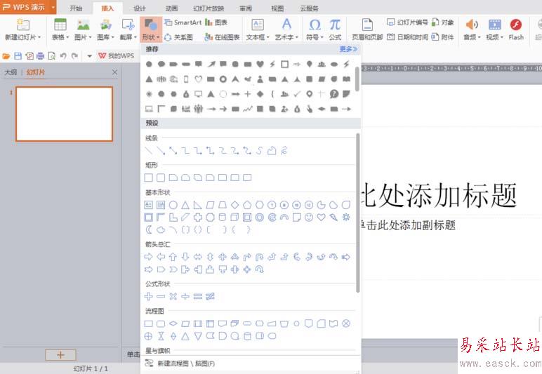 1、打開wps演示后新建一個演示文稿。點擊插入。