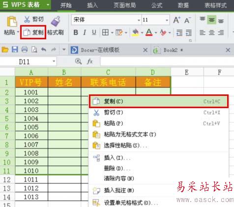 3、使用如下辦法復(fù)制選中的區(qū)域: