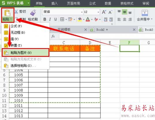 4、將光標(biāo)定位到某個單元格中(也可以在原位置),然后單擊“粘貼”(下三角)按鈕→“粘貼為圖片”。
