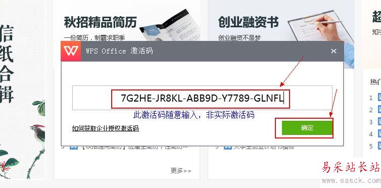 6、我們在彈出的激活界面輸入獲取的激活碼,點擊確定即可激活成功,現在可以享受wps的會員功能了