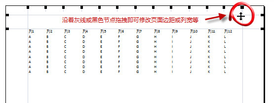 此時預覽窗口會出現一些灰色線條和黑色節點,用鼠標拖拽它們即可輕松調整頁面的設置。