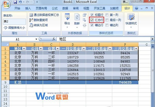 ④勾選設(shè)計選項卡中的匯總行,這樣表格下方就能看到匯總行了,便于之后的計算處理。