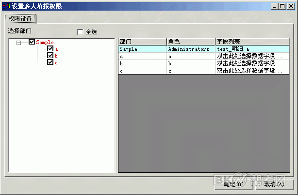 假設有一家公司,有三個部門a/b/c, 對應部門a/b/c,有三個角色a/b/c,對應部門和角色有三個人員a/b/c。對下面的報表:
