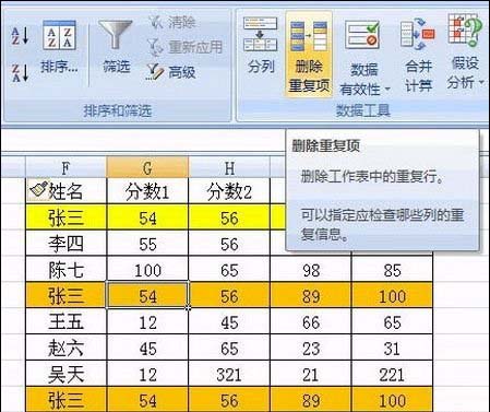 Excel2007中增加了一個“刪除重復項”按鈕,用它來刪除重復記錄更加容易。步驟如下: