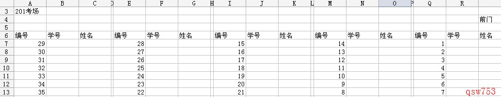 2.好了,我們進(jìn)入“座位安排” ,把基本的信息先輸入進(jìn)去。比如:前門、編號(hào)、學(xué)號(hào)、姓名等。(考室一般是7*5模式,而且是S形的)