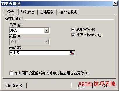 2.在“來源”下方的文本框中輸入“=姓名”。單擊“確定”。