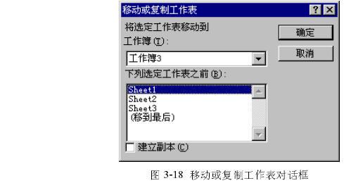 (2) 執(zhí)行“編輯”菜單中的“移動(dòng)或復(fù)制工作表”命令,這時(shí)屏幕上出現(xiàn)如圖3-18所示的對(duì)話框。