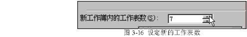 (2)在“新工作簿內(nèi)的工作表數(shù)”輸入框中輸入需要的數(shù)字,如同3-16所示。