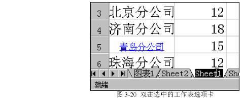 要改變工作表的名字,只需“雙擊”選中的工作表選項(xiàng)卡,這時(shí)屏幕上會(huì)看到工作表選項(xiàng)卡反黑顯示,如圖3-20所示。