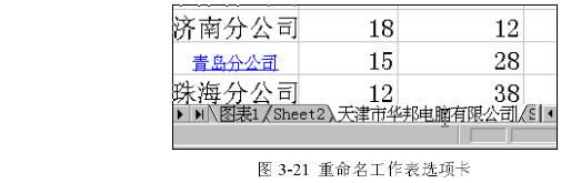 在其中輸入新的名字,當(dāng)按下Enter鍵后,你會(huì)看到新的名字已經(jīng)出現(xiàn)在工作表選項(xiàng)卡中,代替了舊的名字,如圖3-21所示。