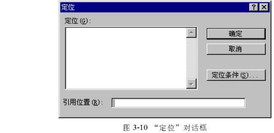 此外,我們也可以在“編輯”菜單中選擇“定位”命令,將指針轉移到目標單元格上;當執行“定位”命令時,在屏幕上會出現一個如圖3-10的對話框,在其中輸入目標單元格的地址,然后按下“確定”按鈕。