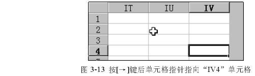 再次按下[End]鍵。按[→]鍵,我們就會看到單元格指針已經指向了“IV4”單元格,同時在名字框中顯示出當前單元格地址,如圖3-13所示。