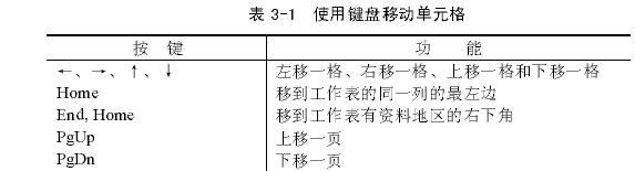 也可以使用鍵盤移動單元格指針,其操作見表3-1所示。