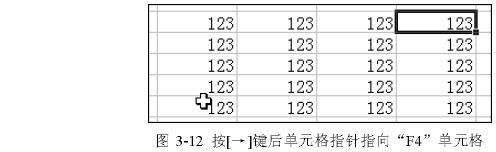 按下[→]鍵,我們就會看到單元格指針已經指向了“C4”單元格。再次按[End]鍵,再按下 [→] 鍵,我們就會看到單元格指針已經指向了“F4”單元格,如圖3-12所示。