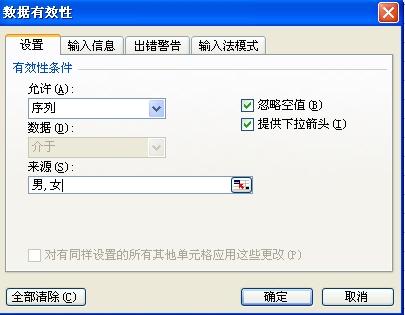 數(shù)據(jù)——有效性——序列,在"來源"中輸入想要選擇的項目,有多項時,可以用半角的逗號隔開.比如."男,女"