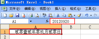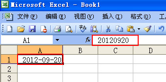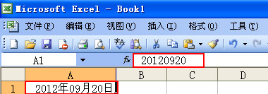 顯示格式,我們來看看剛才設置的格式吧,選擇剛才設置的單元格,輸入20120920,然后回車。如圖所示: