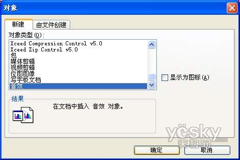 第二步:在“對象”對話框中選擇“音效”→單擊“確定”按鈕。