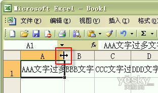比如A列過寬,需要調整。我們把鼠標移到A、B兩列間,當鼠標指針變成雙向箭頭時(如下圖紅框部分),雙擊鼠標左鍵,A列立即調整到最合適列寬。