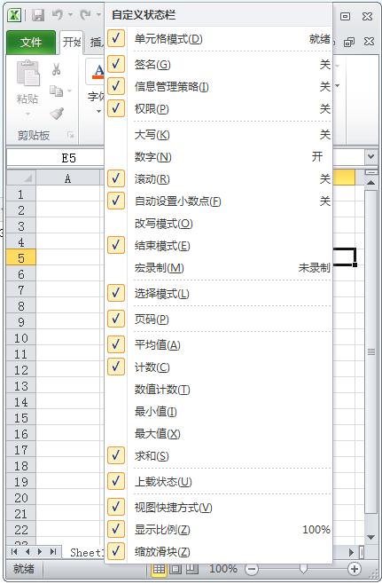 如何自定義Excel狀態欄