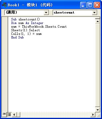 (4)、運行該宏,在該工作簿的第一個工作表的A1單元格中的數字就是工作表的個數。