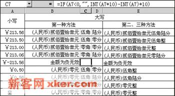 個(gè)位為0,則不顯示;不為0,顯示“XXX元”;不為0、且角位和分位均為0,顯示“XXX元整”;元角分位均為0,則顯示“零元整”。 小數(shù)點(diǎn)后面第一位為0、且元位或分位有一為0,則不顯示;為0、且元位和分位均不為0,則顯示“零”;不為0,顯示“X角”。 小數(shù)點(diǎn)后面第二位為0,則顯示“整”;不為0,顯示“X分”。 根據(jù)以上思路在B2中輸入公式: “IF(B1〈0,"金額為負(fù)無(wú)效",IF(OR(B1=0,B1=""),"(人民幣)零元整")); IF(B1〈1,"(人民幣)",TEXT(INT(B1),"[dbnum2](人民幣)G/通用格式")&&"元")&&IF(INT(B1 10)-INT(B1) 10=0); IF(INT(B1) (INT(B1 100)-INT(B1 10) 10)=0,"","零"),TEXT(INT(B1 10)-INT(B1) 10,"[dbnum2]")&&"角")&&IF((INT(B1 100)-INT(B1 10) 10)=0,"整",TEXT((INT(B1 100)-INT(B1*10)*10),"[dbnum2]")&&"分")))”。 確認(rèn)后B2顯示:“(人民幣)陸仟零伍拾元零玖分”。以后使用時(shí)將公式復(fù)制到有關(guān)單元格中,若轉(zhuǎn)換的對(duì)象B1發(fā)生了變化,可點(diǎn)擊“編輯→替換”將B1替換掉。兩種轉(zhuǎn)換測(cè)試結(jié)果如圖2所示。