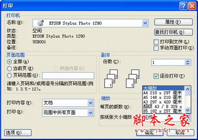 或許,你編輯表格所用的軟件沒有提供“縮放”打印的功能,比如有的財務軟件生成的B4紙型的會計報表怎樣打印到A4紙上呢?此時,我們可以直接求助所用的打印機,將打印機設置為縮小打印。現在,我們以EPSON Stylus Photo 1290打印機(操作系統為Windows XP SP2)為例進行說明。