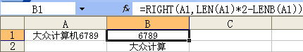 舉例:假設A1單元格的內容是:大眾計算機6789