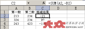 上表中,A列保存的是第一個(gè)數(shù),B列保存的是第二個(gè)數(shù)。現(xiàn)在,我們要通過(guò)函數(shù),實(shí)現(xiàn)這樣的功能,實(shí)現(xiàn)第一個(gè)數(shù)減去第二個(gè)數(shù)后的結(jié)果,其結(jié)果放在C列。