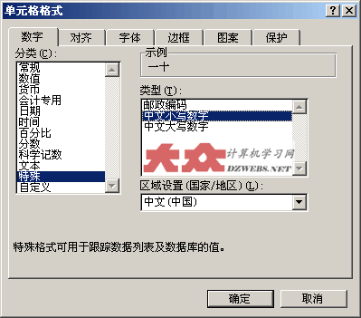 上圖,在“數字”分類中,點擊“特殊”,然后,在右邊那里,有中文小寫數字和中文大寫數字,你想使用哪種,就點擊哪種,這樣,就得到了相應的數字形式。