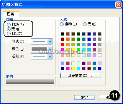 3. 返回“繪圖區格式”對話框,如果不需要繪圖區的邊框,在“邊框”區點選“無”單選框(圖 11)。