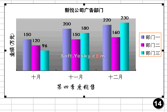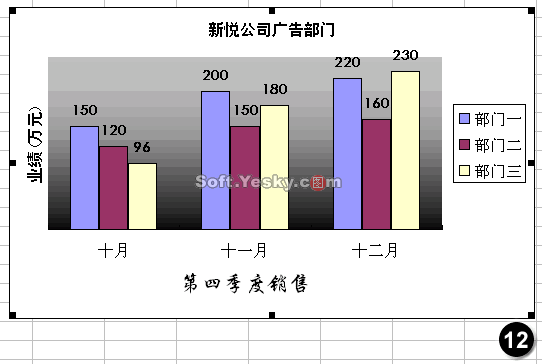 4. 單擊“確定”按鈕后,返回Excel編輯窗口,可以看到繪圖區的背景變為漸變效果,看上去更美觀(圖 12)。