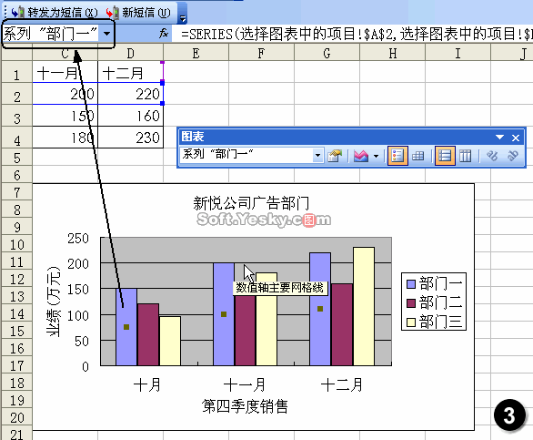 3. 通過這種方法選擇圖表中的項目是即快又準的。如果覺得自己用鼠標直接單擊的方法不容易選準,可以使用這種方法,請記住,不管用哪種方法,都可以通過左上方的名稱框來查看,當前選中的項目是什么(圖 3)。