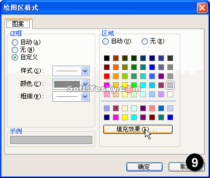2. 在“圖案”選項卡中,為了去掉柱形的邊框,點選“邊框”區的“無”單選框,然后單擊“填充效果”按鈕,打開“填充效果”對話框。