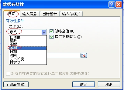 (下拉列表的來源,還可以選定事先輸入好的下拉內容的單元格區域)