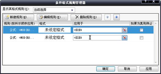 重復步驟2至步驟4的操作,再設置一種顏色,公式為:=MOD(ROW(),2)=0。全部設置完成后,單擊“確定”退出即可。