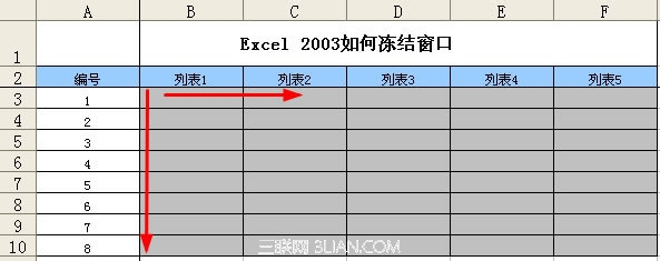 滾動鼠標變可以出現如上圖所示效果,如果要凍結橫和列,如下圖灰色區域所示有該怎么做呢?