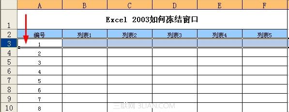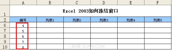 如上表所示的數據,如果是凍結橫,那么直接選中一橫,如上圖選中凍結前兩橫,然后點擊窗口后如下圖所示: