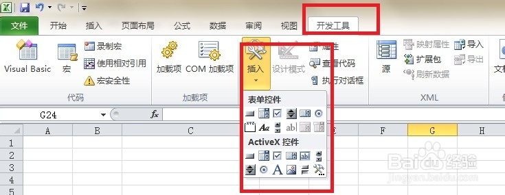 4.在菜單欄出現了“開發工具”,在excel中任意一個位置,點擊“插入”選擇“復選框”,可以插入復選框。右擊復選框可以對文字及復選框進行編輯。