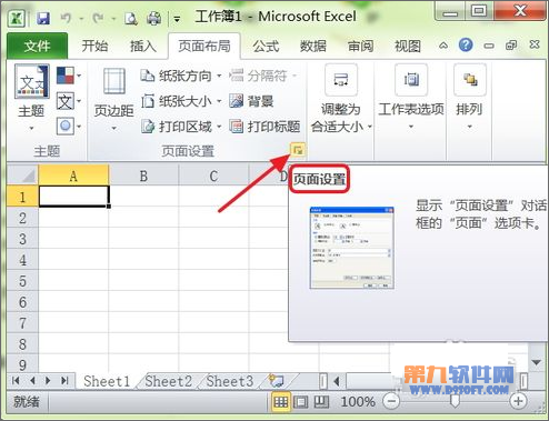 2、接著點擊下圖紅色箭頭所指的“頁面設置”按鈕。