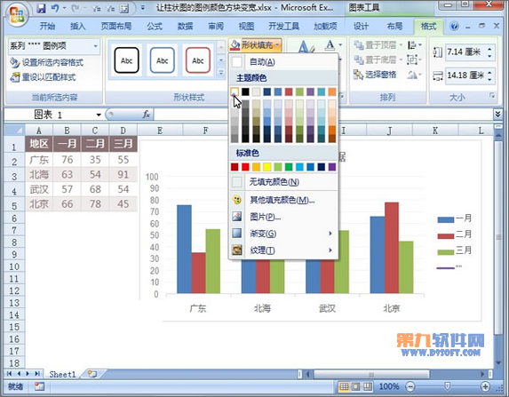 ⑥圖表類型已經被修改,單擊菜單欄--格式--形狀填充,選擇主題顏色為白色。