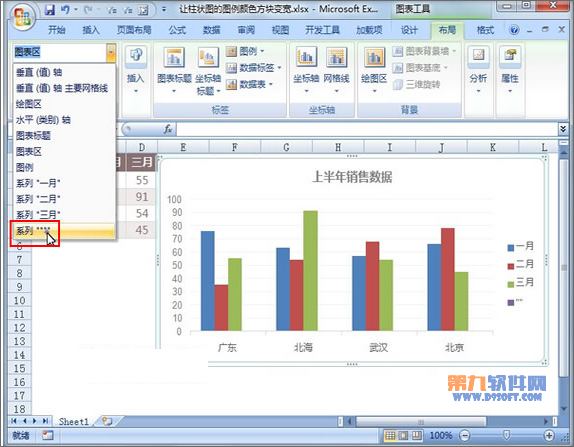 ④然后點擊菜單欄--布局,圖表區右側的小三角箭頭,選擇最后一個系列。