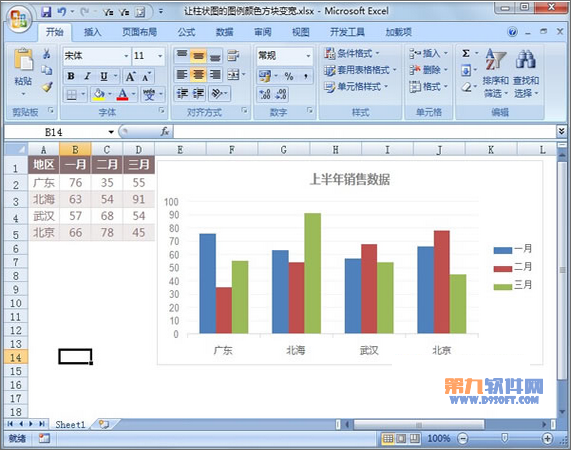 ⑧修改完畢,我們就將柱狀圖的圖例顏色方塊變寬了。